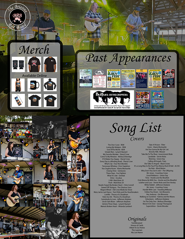 The Brianna Rae Band name written over a pair of headphones over a vintage microphone